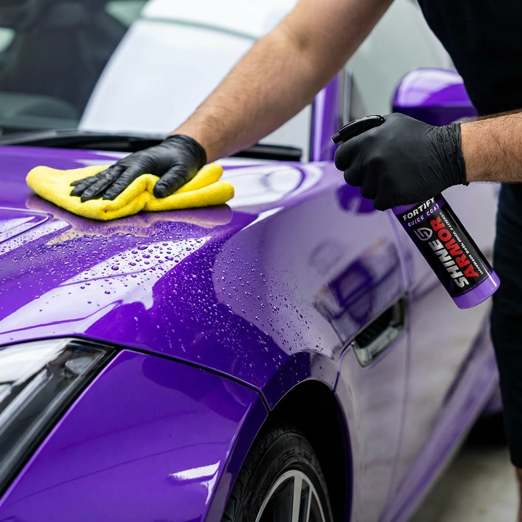 Fortify Quick Coat de Shine Armor es una innovadora cera cerámica en aerosol que limpia, protege y abrillanta la carrocería de su auto en menos de 15 minutos. Gracias a la tecnología nanocerámica, crea una película protectora de larga duración que repele la suciedad, el agua, las manchas, los excrementos de pájaros, la savia de los árboles e incluso los pequeños arañazos. El resultado es un brillo intenso, como de espejo, que realza la apariencia de "nuevo" del vehículo, incluso en la pintura más antigua.