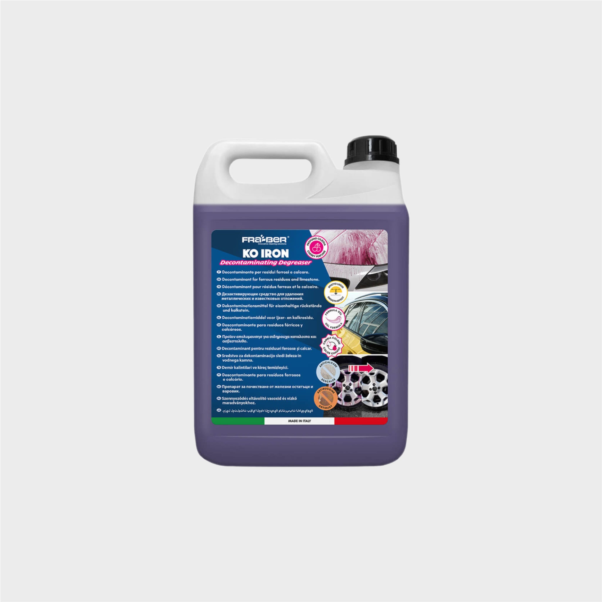 Fra-Ber Ko Iron 4.54L es un descontaminante ferroso profesional de alta capacidad, especialmente desarrollado para uso intensivo en talleres de chapa y pintura, centros de detallado y aplicaciones comerciales . Esta versión profesional ofrece máxima eficiencia en la eliminación de partículas de hierro, óxido, polvo de frenos y depósitos minerales acumulados en la carrocería, las ruedas y el cristal, lo que supone un ahorro significativo para quienes procesan varios vehículos.