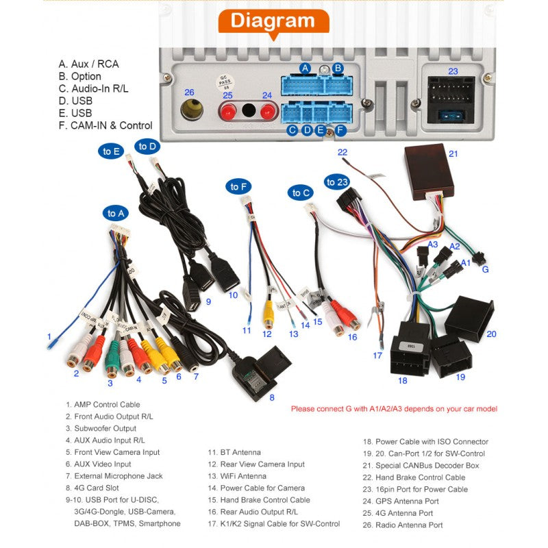 ✔ Entrada dedicada para cámara trasera , cámara DVR y fuente AV
