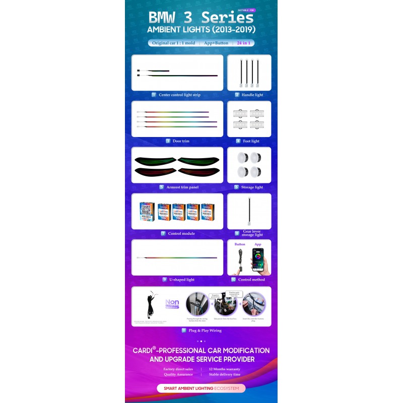Sigue el diseño estético de las luces ambientales, la interpretación clásica del romance francés, elevando la atmósfera de conducción nocturna al siguiente nivel.