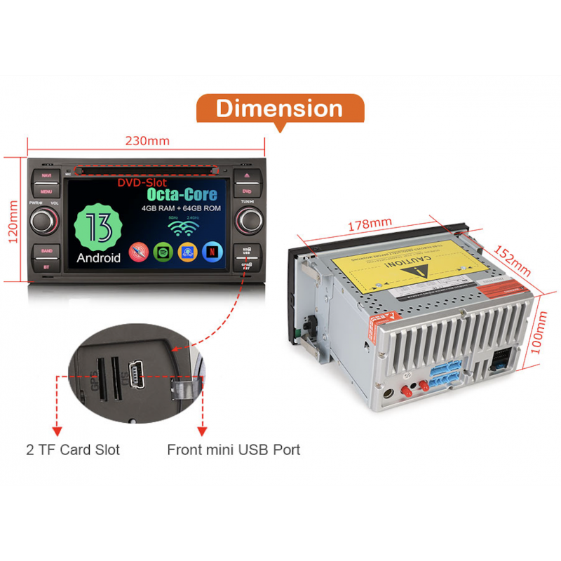 Sistema Android para Ford con función Zlink (CarPlay y Android Auto)